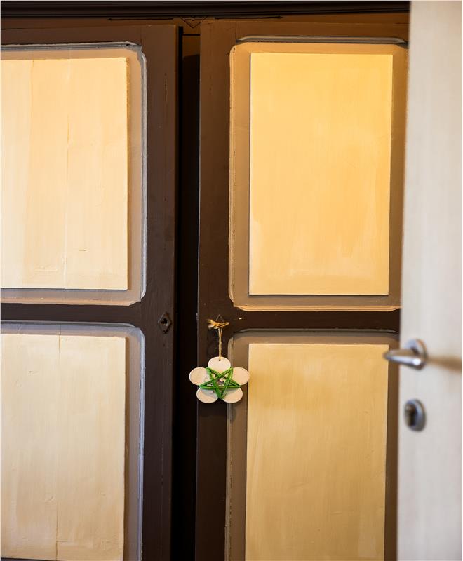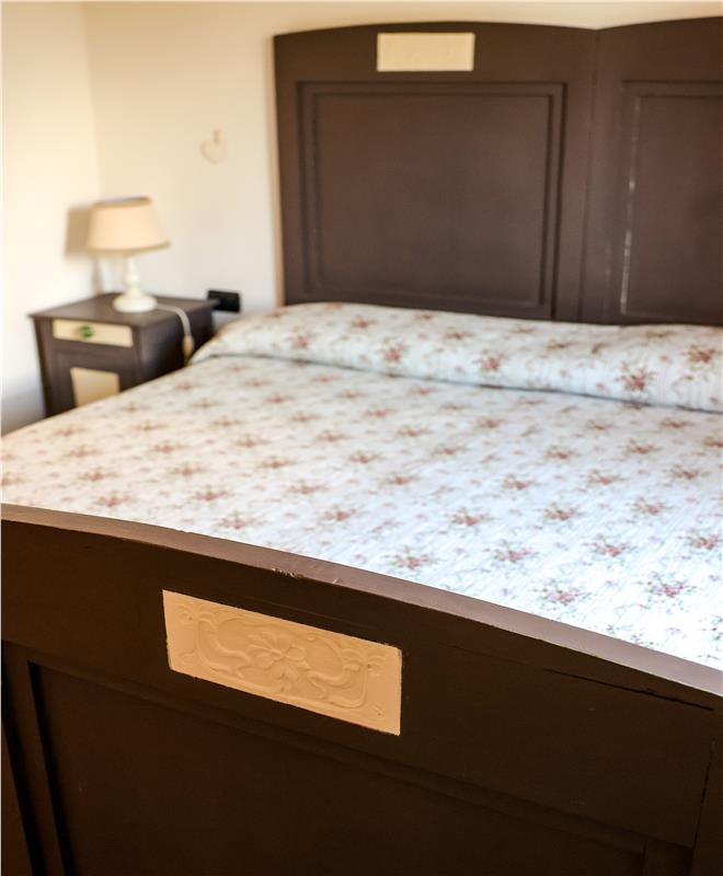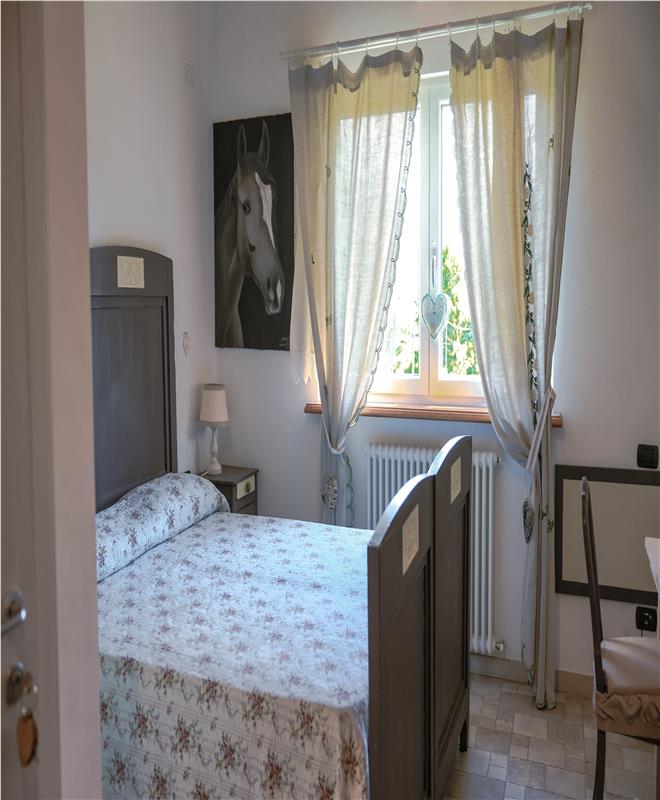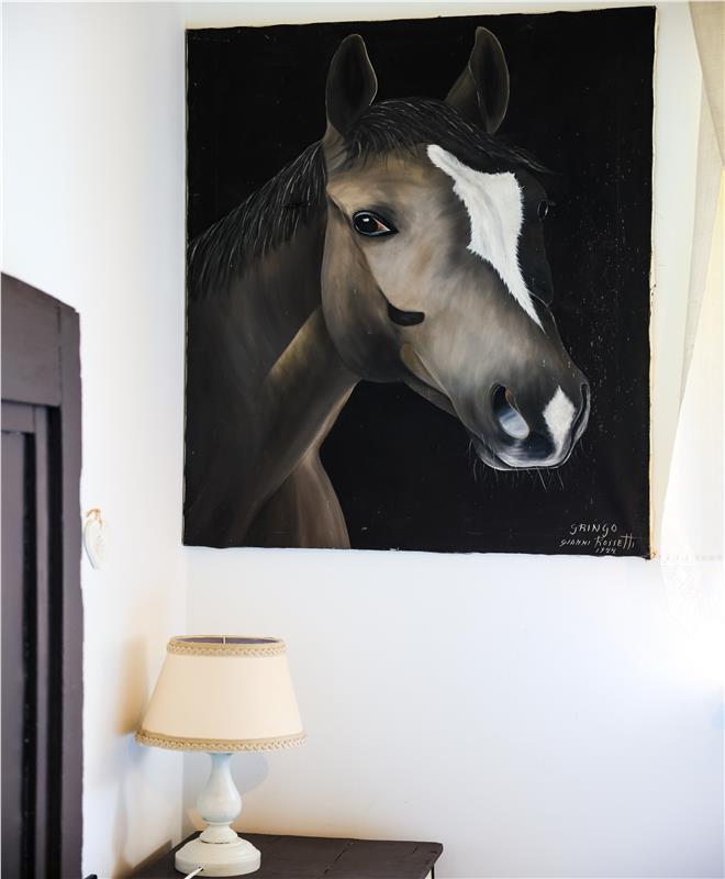 Arredi  del 1930 opportunamente restaurati e decorati, dotata di bagno privato con doccia idromassaggio sui toni del verde appare all’ospite come un piccolo nido caldo e confortevole. Il quadro appeso alla parete, ritrae il muso di un cavallo confortante, forse dipinto da un artista di strada.  Camera doppia con letto a due piazze dotata di linea wifi..